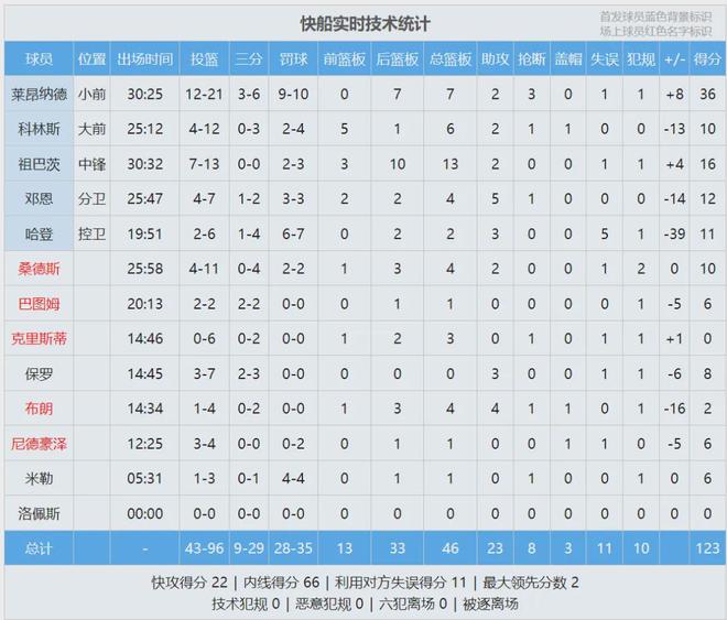 哈登半场正负值-30,生涯第二差,仅次于2015-16赛季的半场-37!第三节刚打2分钟,快船落后到30分,泰伦卢换下全部主力。热火最多领先到38分,泰伦卢害怕输得太难看,第三节最后时刻又把小卡等主力球员逐渐换上场。