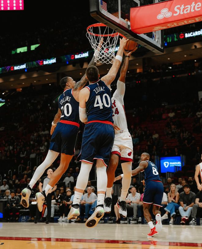值得一提的是,热火两项命中率高达57.4%/66.7%,而快船仅有32.7%/20%。