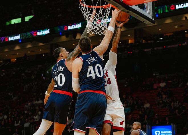 根据快船随队记者穆雷报道,快船老板鲍尔默非常不满当下的处境,和泰伦卢以及运营总裁弗兰克会面时,明确指出两人应该承担责任,并思考如何逆转局面。此外关于球队交易流言也越来越多,除了科林斯之外,洛杉矶媒体也还建议快船应该交易哈登,这是球队现阶段为数不多有价值的筹码。直接进比赛,开场阿德巴约追身飙中三分,维金斯自投自抢,科林斯上篮止血后,阿德巴约连续军训祖巴茨,化身奥尼尔,还将祖巴茨的上篮大帽扇飞!中段维金斯内外开花打停快船,哈登突破抛投,阿德巴约继续扔三分。