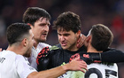 舒梅切尔赛后和拉门斯拥抱,给曼联球员送上祝贺