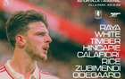 阿森纳客战维拉:厄德高、本-怀特首发,沃特金斯出战